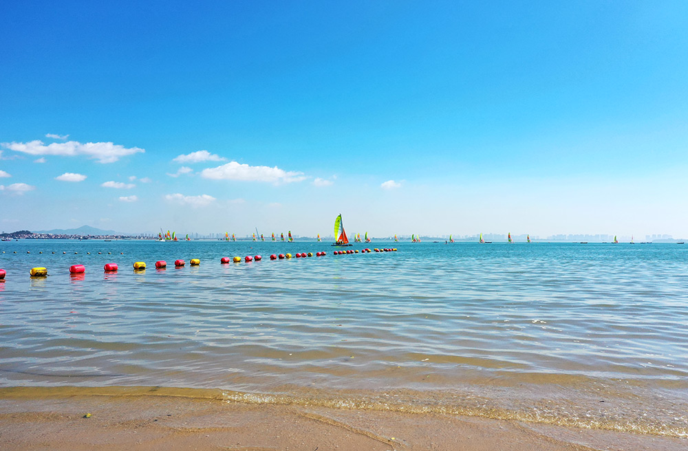 珍珠湾海滨浴场位于珍珠湾花园东侧沙滩,沙滩岸线长520米,游泳区域面积约2公顷,毗邻胡里山炮台、曾厝垵等景区。环东海滨浴场位于浪漫线2号丁坝北侧,背靠彩虹跑道,沙滩岸线长660米,游泳区域面积约1公顷,设置更衣淋浴区、存衣区、便民服务区、救生站等配套设施。两片浴场均配备专业海浪救生员,为市民游客人身安全提供切实保障。